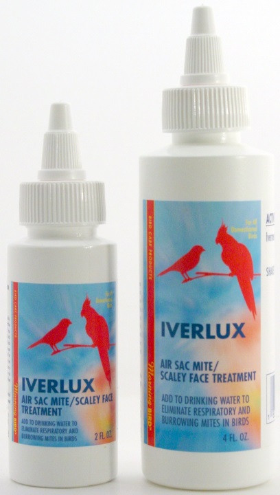 IVERLUX is a treatment for Air Sac Mite and Scaly Face (and leg) Mite infections. Available in 2oz. and 4 oz. bottles.