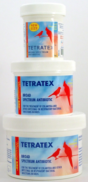 TETRATEX is a broad spectrum antibiotic used for the treatment of chlamydial and other intestinal or respiratory bacterial infections in birds. Available in 1 oz. container only.